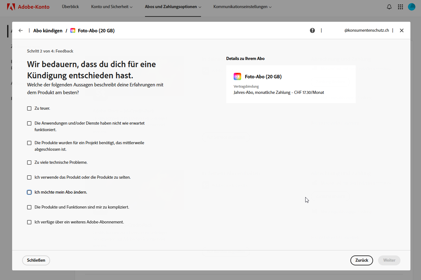 Dieses Dark Pattern wird besonders oft angewendet, in der Regel in einer Kombination mit weiteren Dark Patterns wie «Verstecktes Abonnement» oder «Vorbeischleichen». Neben kleinem Text zählt auch das ablenkende, auffällige Hervorheben einer Auswahlmöglichkeit gegenüber den Anderen dazu.