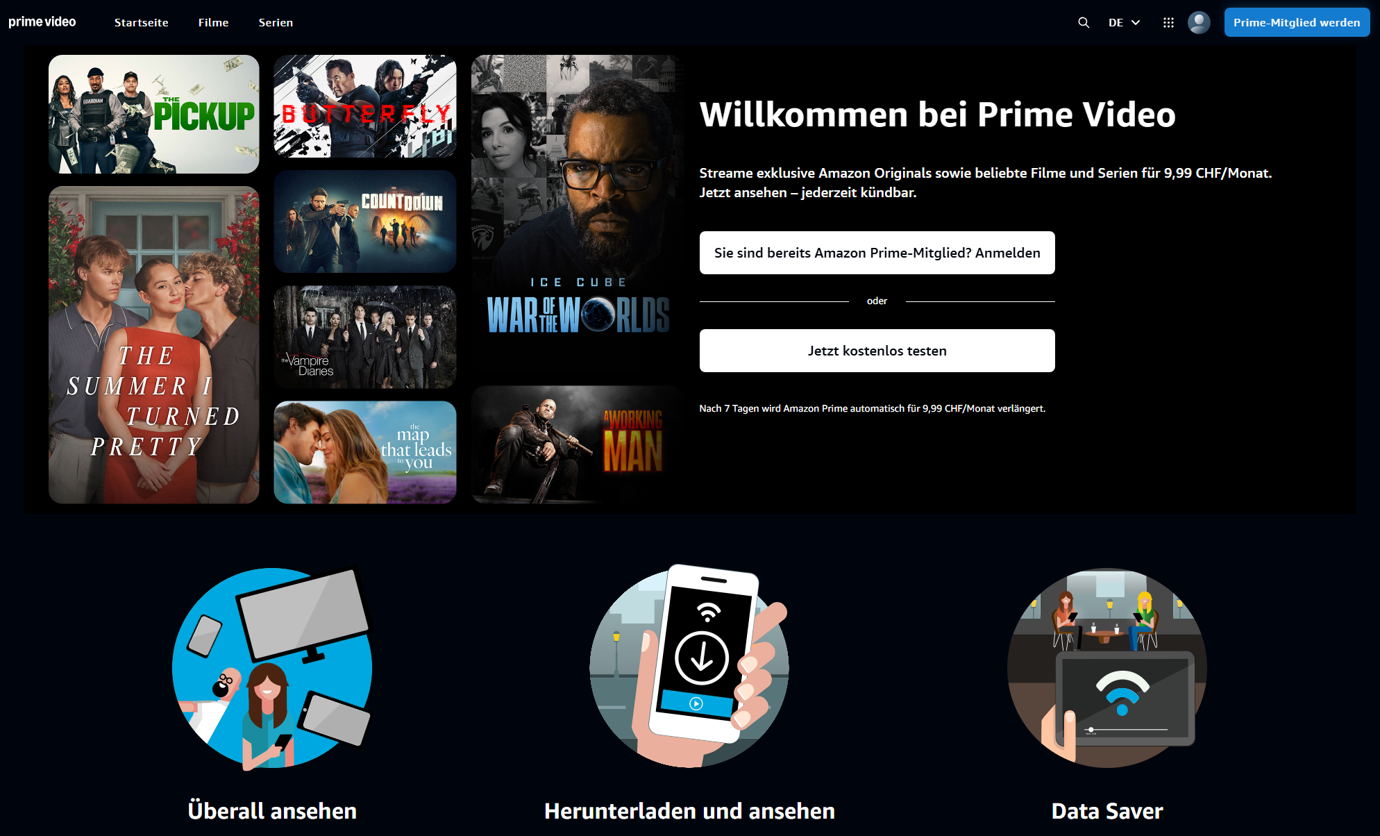 Nach Ablauf der kostenlosen Probezeit von 7 Tagen wird das Abonnement für Amazon Prime automatisch für 9,99 CHF pro Monat verlängert.